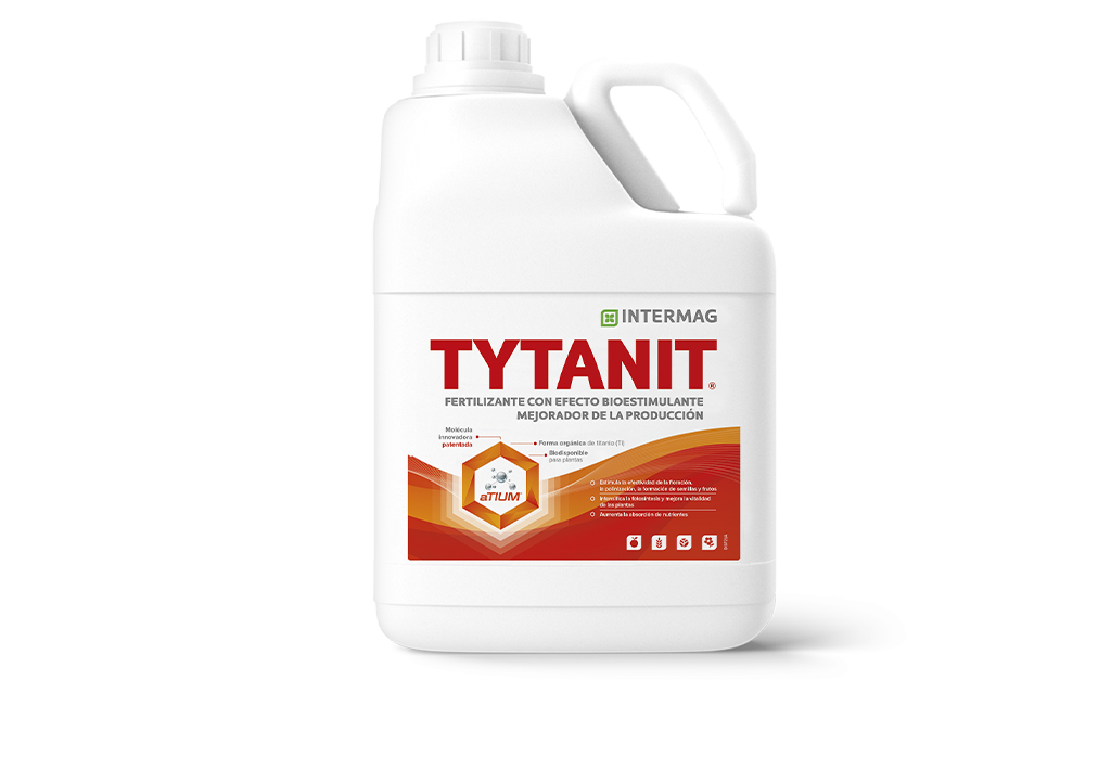 TYTANIT® es un bioestimulante de rendimiento patentado, que contiene TITANIO en una forma de molécula única aTIUM®, que asegura su alta efectividad.