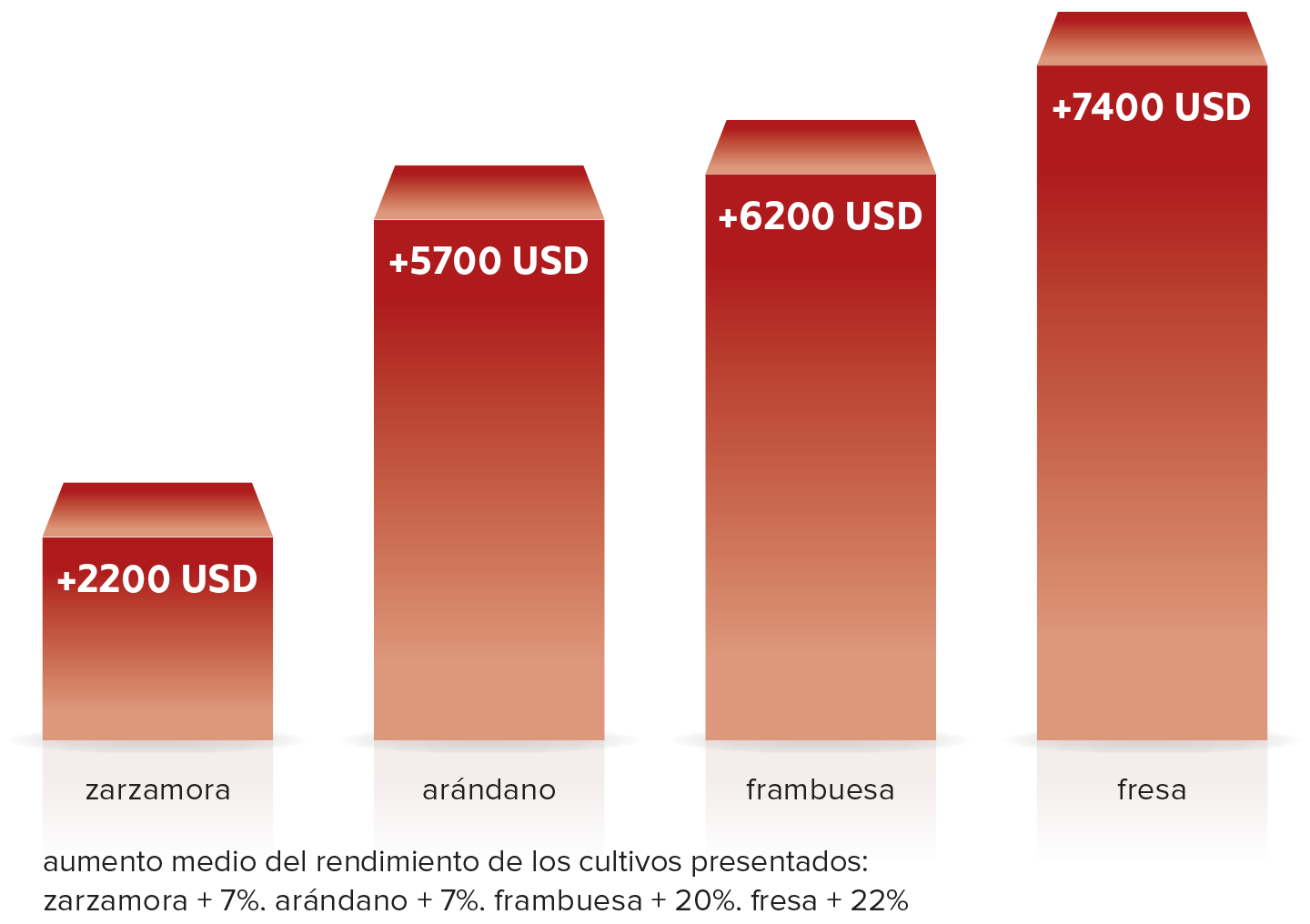 Ganancia promedio por hectárea en los cultivos de berries seleccionados después de la aplicación de TYTANIT® (dosis media: 6 x 0,4 L/Ha)*